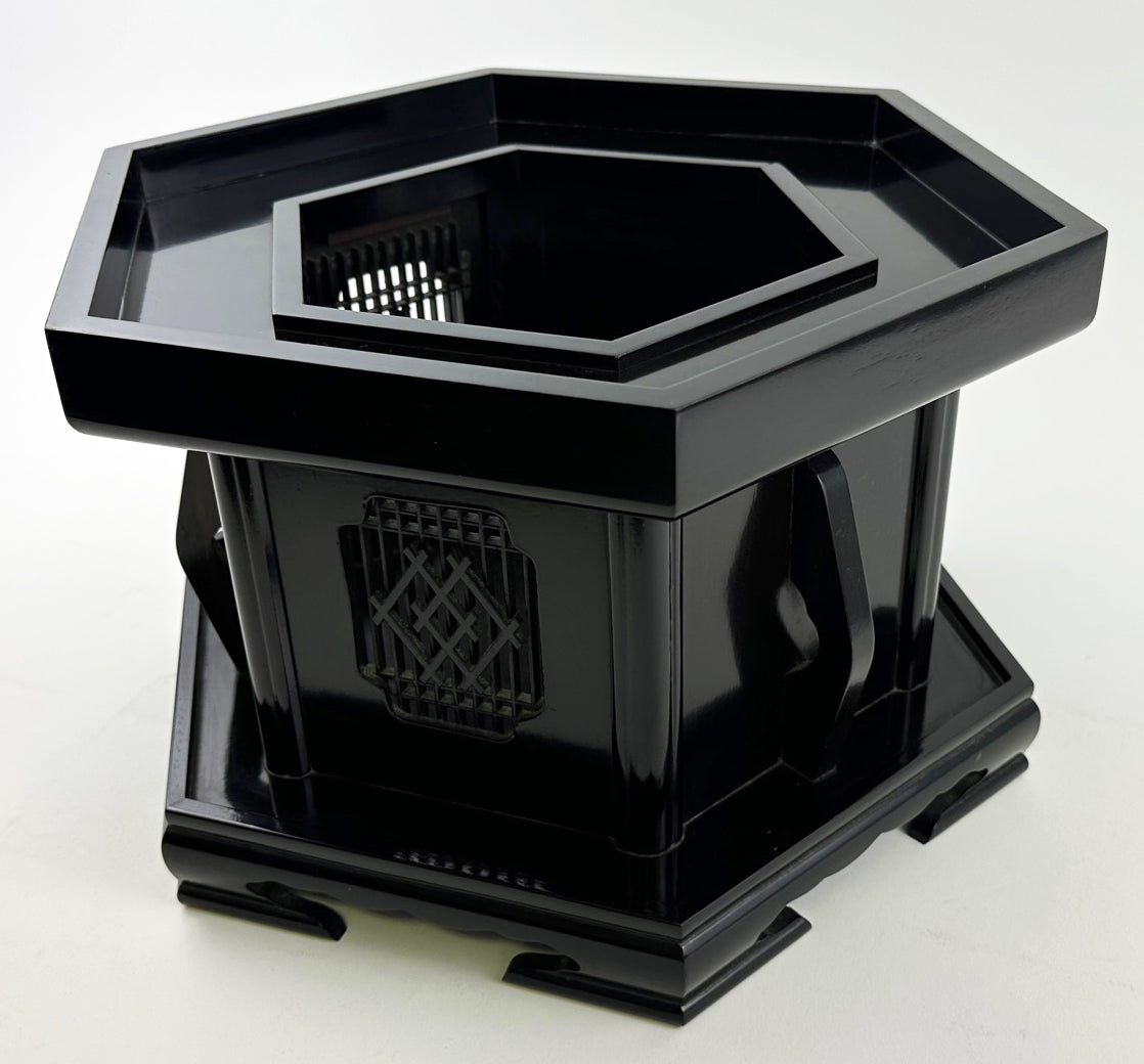 No. 9 Hand Pounded Bell (10.5" Diameter) with Ebony Hexagonal Wooden Base and Gold Cushion with Bell Stick Set (Display Model)